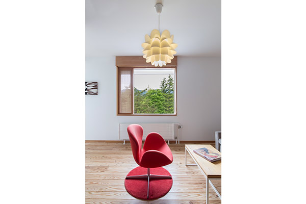 扉を開けると、個性的なランプやチェアがお出迎え。